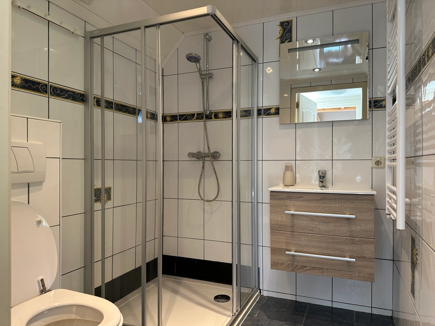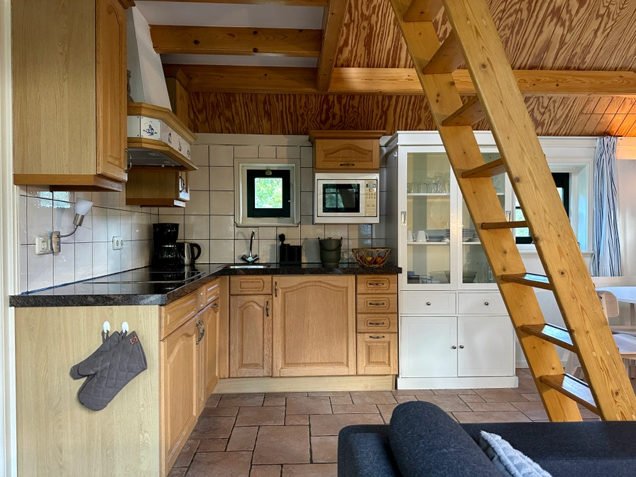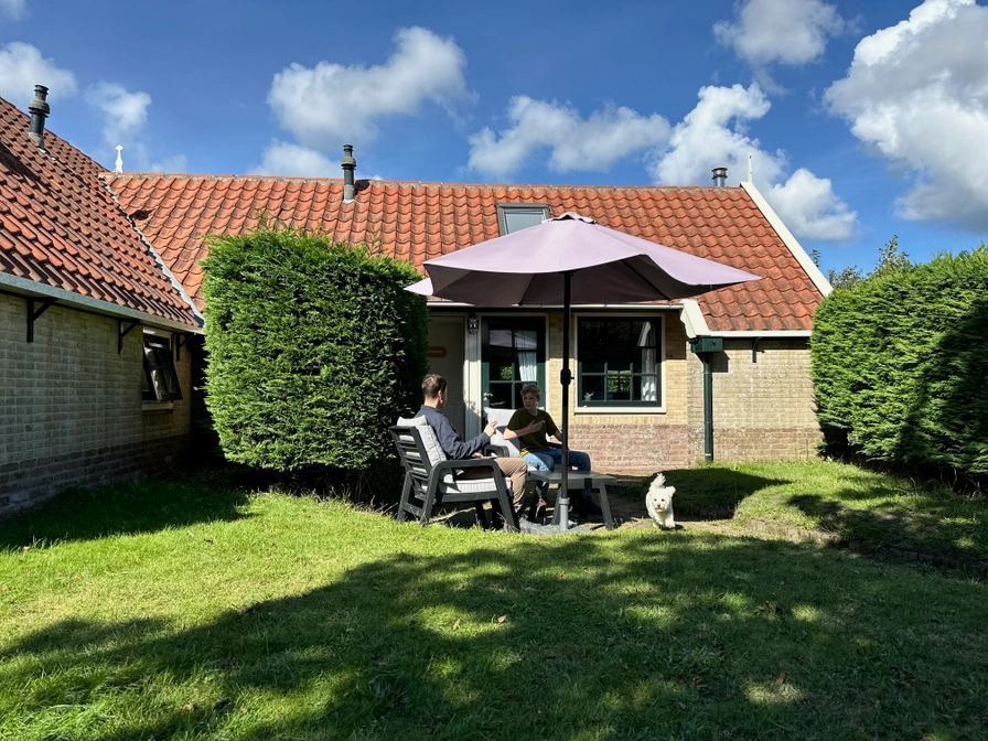 Nach einem Wattspaziergang erreichen Sie Ihr Ferienhaus. Unter der Markise wartet ein Schuhständer, damit nasse Schuhe trocknen können, bevor Sie eintreten. Hängen Sie Ihre Jacke im Eingangsbereich auf und gelangen Sie in das helle Wohn-Esszimmer. Der 20 m² große Raum verfügt über einen Fliesenboden mit Fußbodenheizung und einen gemütlichen Gaskamin. Hier finden Sie ein bequemes Zweisitzer-Sofa und einen Essbereich mit vier Stühlen. Die offene Küche ist komplett ausgestattet: ein 4-Flammen-Cerankochfeld mit Dunstabzugshaube, ein Kühlschrank mit kleinem Gefrierfach, eine Mikrowelle, ein Geschirrspüler, eine Waschmaschine, eine Kaffeemaschine und ein Wasserkocher. Zum Entspannen gibt es einen Smart-TV mit Zugang zu Ihren Streaming-Diensten und eine Sonos-Box, die Sie ganz einfach per Bluetooth mit Ihrem Smartphone verbinden können – ideal für Ihre Lieblingsmusik oder Ihren Podcast. Im Erdgeschoss befindet sich das Schlafzimmer mit zwei 90 x 200 cm großen Boxspringbetten, ausgestattet mit bequemen Einzelbettdecken und einer Tagesdecke. Auf beiden Seiten des Bettes befinden sich ein Nachttisch, eine Leselampe und eine Steckdose. Es gibt auch einen zweiten Fernseher. Das Badezimmer liegt direkt neben dem Schlafzimmer und verfügt über eine Dusche und ein WC. Das Ferienhaus bietet derzeit Platz für zwei Personen. Optional können zwei weitere Schlafplätze im Zwischengeschoss (mit den gleichen Betten wie im Erdgeschoss) eingerichtet werden. Das Zwischengeschoss ist über eine Windradtreppe erreichbar und bietet einen gemütlichen Platz für ältere Kinder. Ab Ende Oktober 2025 gibt es eine zusätzliche Option: ein Dreiviertel-Doppelschlafsofa im Wohn-Esszimmer, das bequem Platz für vier Personen bietet. Draußen erwartet Sie ein sonniger Garten mit zwei Liegestühlen, Kissen, einem Couchtisch und einem Sonnenschirm. Genießen Sie Ihre Mahlzeiten im Freien am Picknicktisch und lauschen Sie dabei den vielen Vögeln, die im Frühling in den Büschen sitzen. Natürlich können Sie auch drinnen im Essbereich im Wohnzimmer speisen. Der Parkplatz des Ferienhauses, der für ein Auto geeignet ist, liegt direkt an der Hauptstraße. Von hier führt ein gepflasterter Weg zur Haustür.