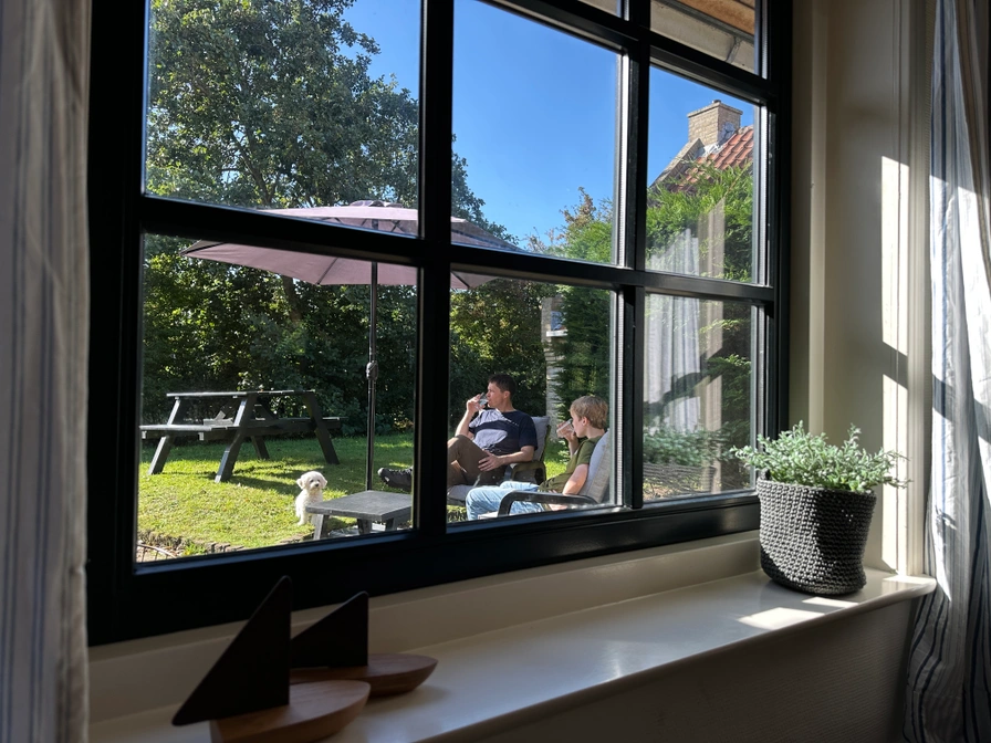 Wir sind die Familie Klinkenberg: Michiel, Jennifer, unser Sohn und ein Zwergpudel. Gemeinsam betreiben wir Wad 'n Stek und sind seit September 2025 stolze Besitzer der Ferienhäuser Gele Lis und Vergeet me niet in Oosterend. Unsere Lieblingsbeschäftigung ist Wandern in der Natur. Als Kind fuhr Jennifer mit dem Fahrrad zur Boschplaat und spielte später Verstecken im Hoornse Bos. 2015 kam sie zurück, diesmal mit Michiel und unserem Kleinkind. Seitdem kehren wir jedes Jahr nach Terschelling zurück, am liebsten nach Oosterend – oft sogar in dieselben Ferienhäuser, die wir heute stolz vermieten. Wir erkunden die Insel weiterhin und wandern bis zur äußersten Spitze. Für uns ist Terschelling ein Ort der Ruhe, des Staunens und der Verbundenheit. Sobald wir das Boot betreten, atmen wir tief durch, entspannen uns und fühlen uns wohl. Das möchten wir auch unseren Gästen ermöglichen: dass sie bei ihrer Ankunft sofort loslassen und sich willkommen fühlen können.