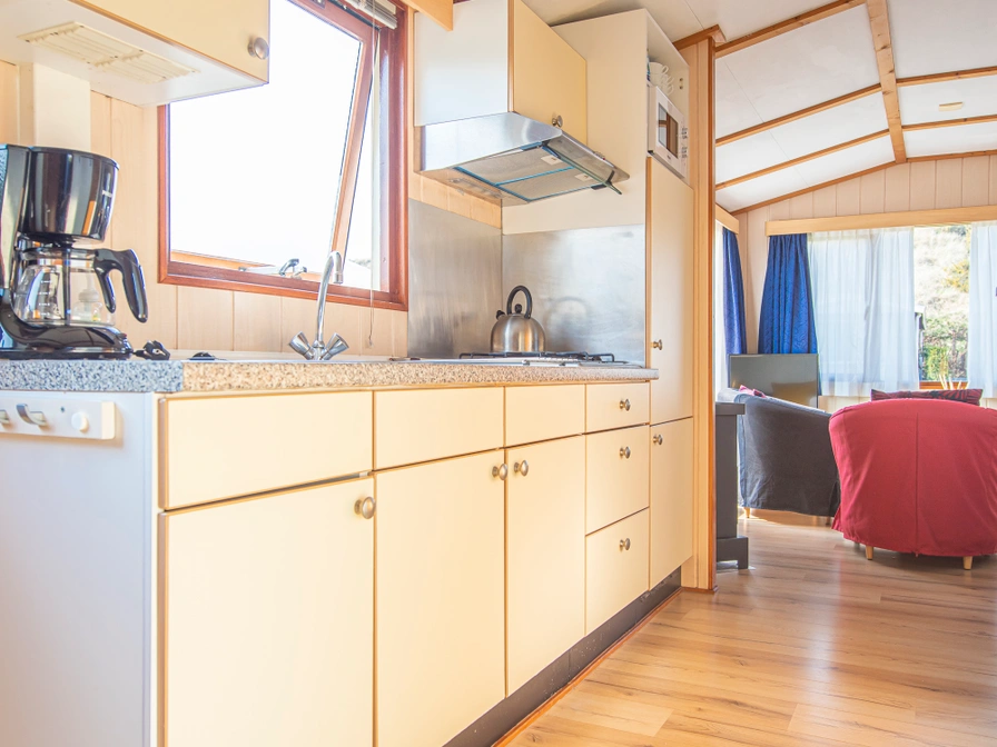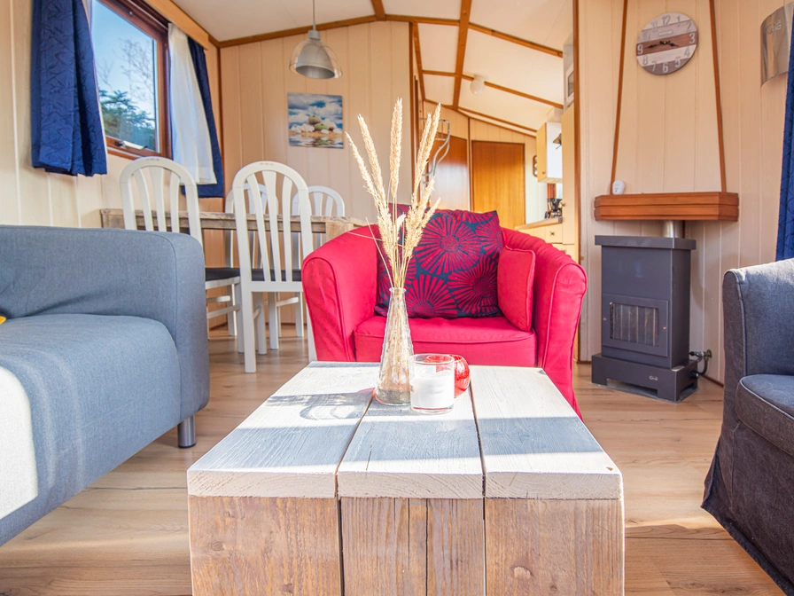 Das 30 m² große Chalet für vier Personen liegt auf dem Spielfeld und verfügt über eine Gasheizung, Digitalfernsehen und WLAN. Camping Wulp ist ein kleiner Campingplatz am Halfweg. Dieses Chalet liegt auf der Straßenseite. Wenn Sie glauben, dass Sie durch die Straße belästigt werden, ist es besser, ein Chalet auf der Dünenseite zu wählen, sofern noch verfügbar. Das Feld ist von Bäumen gesäumt. Wohnzimmer mit Laminatboden mit Sofa und zwei Stühlen. Es gibt einen Esstisch mit vier Stühlen, eine Küche mit 4-Flammen-Kochfeld, Kühlschrank, Dunstabzugshaube, Kaffeemaschine und Mikrowelle. Badezimmer mit Dusche, Toilette und Waschbecken. Es gibt zwei Schlafzimmer. Ein Schlafzimmer mit 1 x Doppelbett (140 x 200) und ein Schlafzimmer mit 2 x Einzelbett (2 x 80-200). Es gibt 4 Einzelbettdecken. Ein Hochstuhl, Bettgitter oder Campingbett kann kostenlos telefonisch oder per E-Mail angefragt werden. Terrasse mit Tisch und 4 Stühlen und Sonnenschirm. Das Mittelfeld wird als Spielraum freigehalten.