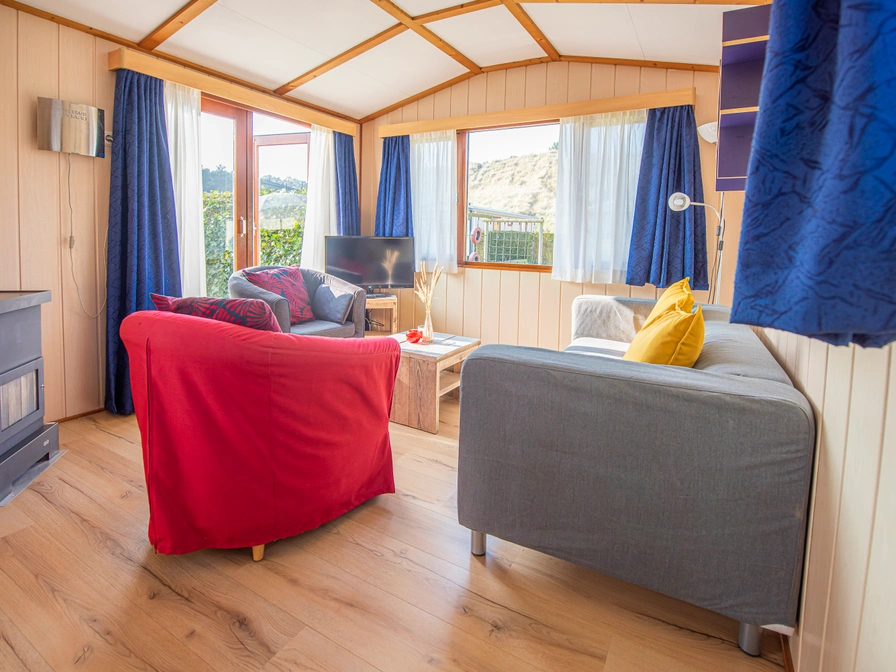 Dieses Chalet liegt auf der Straßenseite. Wenn Sie glauben, dass Sie durch die Straße belästigt werden, ist es besser, ein Chalet auf der Dünenseite zu wählen, sofern noch verfügbar. Bettwäsche und Handtücher können Sie mieten oder selbst mitbringen. Sie können die Reinigung selbst durchführen oder durchführen lassen. Dies können Sie im Buchungsvorgang angeben.