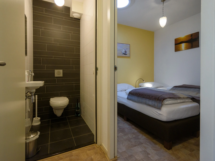 De Zuidhoek ist ein sonniges Ferienhaus für 6 Personen auf Terschelling. Es handelt sich um eine Doppelhaushälfte im Terschellinger Stil am Rande des Dorfes Hoorn. De Zuidhoek ist ein Eckhaus mit einem geschützten, sonnigen Garten in Südlage. Der Strand ist ca. 1500 Meter entfernt. Grundriss von De Zuidhoek: Das Haus erstreckt sich über drei Etagen. Vom Flur aus betreten Sie die moderne, helle und luxuriöse Wohnküche mit Fernseher und Stereoanlage. Musikstreaming ist über Bluetooth möglich. Die Küche ist sehr komplett ausgestattet und verfügt über eine Kombi-Mikrowelle/Backofen, ein 4-Flammen-Induktionskochfeld, einen Geschirrspüler, eine Nespresso-Kaffeemaschine, eine normale Kaffeemaschine, einen Toaster, eine Zitruspresse, einen Wasserkocher und einen Stabmixer. Waschmaschine, Trockner, Bügelbrett und Bügeleisen sind ebenfalls vorhanden. Im Flur befindet sich ein separates WC. Im ersten Stock befindet sich das gemütlich eingerichtete Wohnzimmer mit Gaskamin, Smart-TV, Netflix, Radio/CD-Player und der Möglichkeit, eigene Musik über Bluetooth zu streamen. Vom Wohnzimmer aus haben Sie einen Blick auf den Wattenmeerdeich und die Kirche von Hoorn. Im Erdgeschoss befinden sich drei Schlafzimmer. Zwei davon sind mit je einem 1 x 2-Personen-Boxspringbett und ein Schlafzimmer mit 2 x 1-Personen-Boxspringbetten ausgestattet. Die Betten sind 80 x 200 cm groß. Das Badezimmer verfügt über eine Badewanne, eine Dusche und ein Doppelwaschbecken. Ein Kosmetikspiegel und ein Haartrockner sind vorhanden. Eine separate Toilette ist ebenfalls vorhanden. Das gesamte Haus verfügt über Fußbodenheizung, ist mit schönen Materialien ausgestattet und wurde mit viel Liebe zum Detail und einer geschmackvollen, nicht alltäglichen Einrichtung eingerichtet. WLAN ist selbstverständlich verfügbar. Das Haus ist nach Süden ausgerichtet, ebenso wie der geschützte Garten mit einem luxuriösen Natursteintisch und Stühlen für 6 Personen. Hier können Sie sich in völliger Freiheit entspannen. Sonnenschirm vorhanden. Kinderbett, Hochstuhl und Treppengitter sind ebenfalls vorhanden. Es gibt einen Fahrradschuppen mit Ladestation für E-Bikes und einen Autostellplatz. De Zuidhoek liegt am Rande von Hoorn, nur einen Steinwurf vom Naturschutzgebiet De Koegelwieck und dem Hoornse-Wald entfernt. Mehrere gemütliche Restaurants, ein Fahrradverleih, eine Bushaltestelle, eine Bäckerei und ein Spielplatz sind zu Fuß erreichbar. Spar-Supermarkt 1 km entfernt.