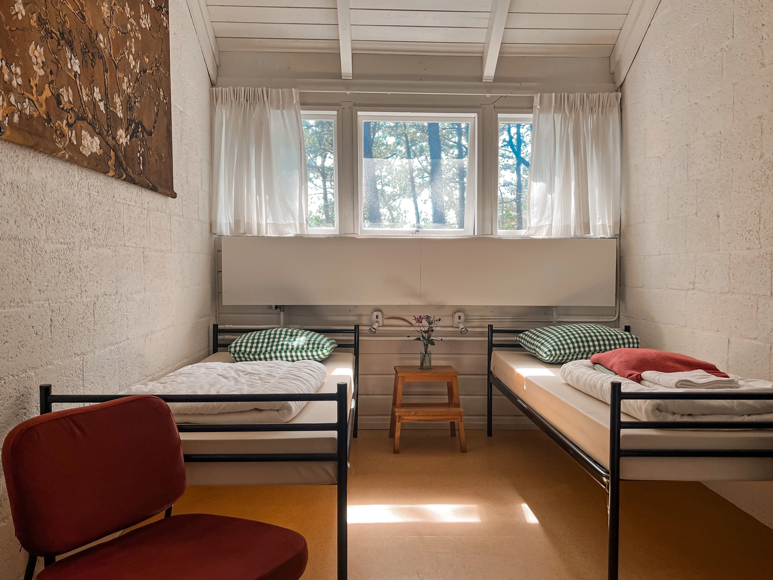 De Folks ist der ultimative Ort auf Terschelling zum Übernachten, Leute treffen und Entdecken. Neben einem Kurs oder Retreat können Sie auch einfach in einer der Unterkünfte entspannen! Wählen Sie zwischen Waldzimmern mit Sitzgelegenheiten direkt im Grünen, historischen Bunkern, die in komfortable Unterkünfte umgewandelt wurden, 4-Personen-Apartments oder verschiedenen Budgetzimmern. Alle Zimmer verfügen über eine eigene Dusche und Toilette, und einige haben sogar eine eigene Küche!