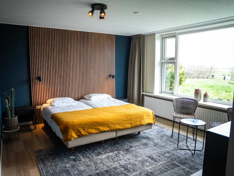 Gruppenunterkunft De Horper Wielen – Geräumig und gemütlich nahe Baaiduinen und Midsland An der Wattenmeerküste, in der Nähe der Dörfer Baaiduinen und Midsland mit ihren Geschäften, Supermärkten und Restaurants, liegt De Horper Wielen. Diese Gruppenunterkunft ist ideal für Freundesgruppen, Familien und Geschäftstreffen und verbindet Komfort mit viel Platz und gemütlicher Atmosphäre. Gemeinschaftsbereiche * Essbereich (Südseite): großer, langer Tisch (8–10 Personen) und 7 kleinere Tische (2–3 Stühle), Bücherregal, Spiele, Smart-TV und HEOS Bluetooth-Lautsprecher. * Bar mit 3 Kühlschränken. * Wohnzimmer (Nordseite): zwei 4-Sitzer-Sofas, zwei Sessel und ein Couchtisch. * Buffetbereich hinter dem Essbereich und Wohnzimmer, ideal für Frühstück oder Mahlzeiten. * Küche: komplett ausgestattet mit 5-Flammen-Gasherd mit Backofen, Dunstabzugshaube, Geschirrspüler, Sandwichtoaster, Grillplatte, großen Töpfen, Doppel-Bain-Marie-Geschirr, Geschirr und Besteck. Zwei Kühlschränke sind vorhanden. * Zusätzliche Ausstattung**: Kaffeemaschine, Waschmaschine und Trockner. Schlafzimmer & Badezimmer: Insgesamt 10 Schlafzimmer, darunter: * 8 Schlafzimmer mit zwei Einzelbetten. * 2 Schlafzimmer mit einem Doppelbett (werden als Einzelzimmer vermietet). Jedes Schlafzimmer verfügt über ein eigenes Badezimmer mit Dusche, WC und Waschbecken sowie eine Sitzecke und einen Kleiderschrank. * Erdgeschoss: geräumiges Schlafzimmer ohne Stufen, barrierefrei. * Flur: 3 Schlafzimmer über 4 Stufen erreichbar, zusätzliches WC. * Obergeschoss: 6 Schlafzimmer, eines mit Südterrasse und drei mit Blick auf die Wiesen auf der Nordseite. Es gibt einen großzügigen Garten mit mehreren Sitzbereichen und schattigen Bereichen auf der Nord- und Südseite. Ein privater Parkplatz mit Platz für Fahrräder und drei Autos.