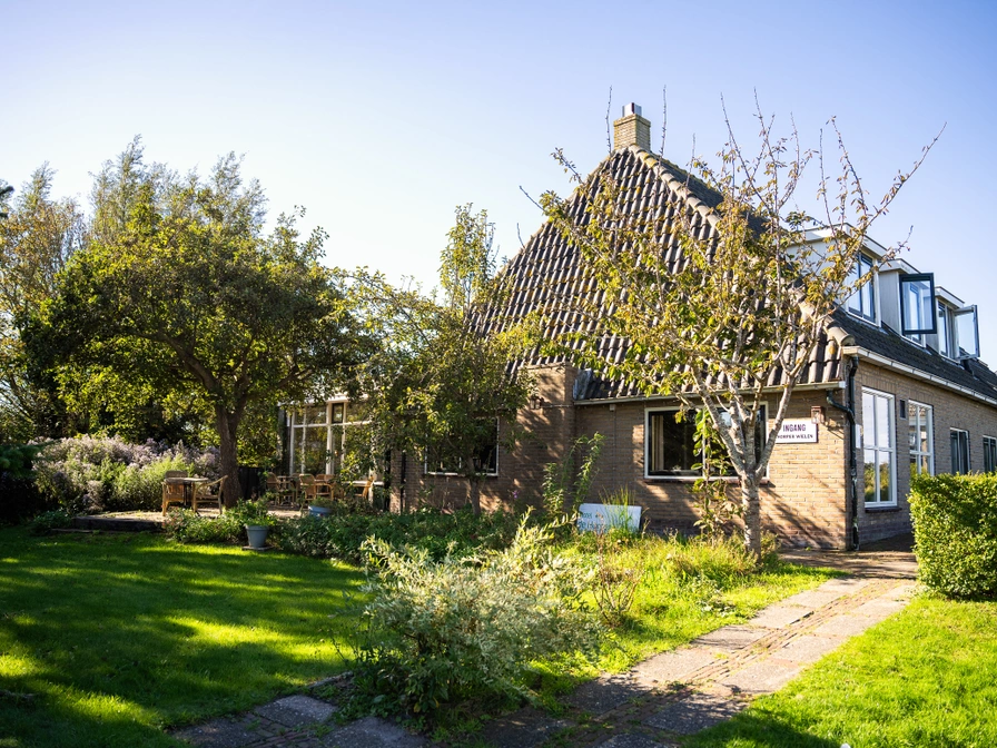 Gruppenunterkunft De Horper Wielen – Geräumig und gemütlich nahe Baaiduinen und Midsland An der Wattenmeerküste, in der Nähe der Dörfer Baaiduinen und Midsland mit ihren Geschäften, Supermärkten und Restaurants, liegt De Horper Wielen. Diese Gruppenunterkunft ist ideal für Freundesgruppen, Familien und Geschäftstreffen und verbindet Komfort mit viel Platz und gemütlicher Atmosphäre. Gemeinschaftsbereiche * Essbereich (Südseite): großer, langer Tisch (8–10 Personen) und 7 kleinere Tische (2–3 Stühle), Bücherregal, Spiele, Smart-TV und HEOS Bluetooth-Lautsprecher. * Bar mit 3 Kühlschränken. * Wohnzimmer (Nordseite): zwei 4-Sitzer-Sofas, zwei Sessel und ein Couchtisch. * Buffetbereich hinter dem Essbereich und Wohnzimmer, ideal für Frühstück oder Mahlzeiten. * Küche: komplett ausgestattet mit 5-Flammen-Gasherd mit Backofen, Dunstabzugshaube, Geschirrspüler, Sandwichtoaster, Grillplatte, großen Töpfen, Doppel-Bain-Marie-Geschirr, Geschirr und Besteck. Zwei Kühlschränke sind vorhanden. * Zusätzliche Ausstattung**: Kaffeemaschine, Waschmaschine und Trockner. Schlafzimmer & Badezimmer: Insgesamt 10 Schlafzimmer, darunter: * 8 Schlafzimmer mit zwei Einzelbetten. * 2 Schlafzimmer mit einem Doppelbett (werden als Einzelzimmer vermietet). Jedes Schlafzimmer verfügt über ein eigenes Badezimmer mit Dusche, WC und Waschbecken sowie eine Sitzecke und einen Kleiderschrank. * Erdgeschoss: geräumiges Schlafzimmer ohne Stufen, barrierefrei. * Flur: 3 Schlafzimmer über 4 Stufen erreichbar, zusätzliches WC. * Obergeschoss: 6 Schlafzimmer, eines mit Südterrasse und drei mit Blick auf die Wiesen auf der Nordseite. Es gibt einen großzügigen Garten mit mehreren Sitzbereichen und schattigen Bereichen auf der Nord- und Südseite. Ein privater Parkplatz mit Platz für Fahrräder und drei Autos.