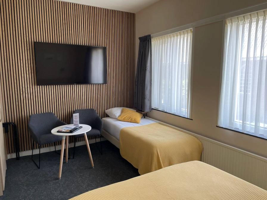 Das alte Etablissement, in dem Kapitän Jan Wandelaar aus -Hollands Glorie - oft wohnte; das Zimmer, in welchem die Dichterin Ida Gerhardt ihr -Onder de Brandaris - schrieb... eine sonnenübergossene Insel mit dem Geruch von Teer und Tau im Hafen; ein Streifzug entlang Wald und See; ein warmes und gastfreundliches Hotel mit exzellenter Küche und einem gemütlichen Restaurant, Cafésaal mit Billard und sonniger Terrasse. Das sind die Zutaten für einen unvergesslichen Urlaub. Das Hotel steht im Herzen des pittoresken West-Terschelling, 4 Minuten Fußweg von der Fähre entfernt.