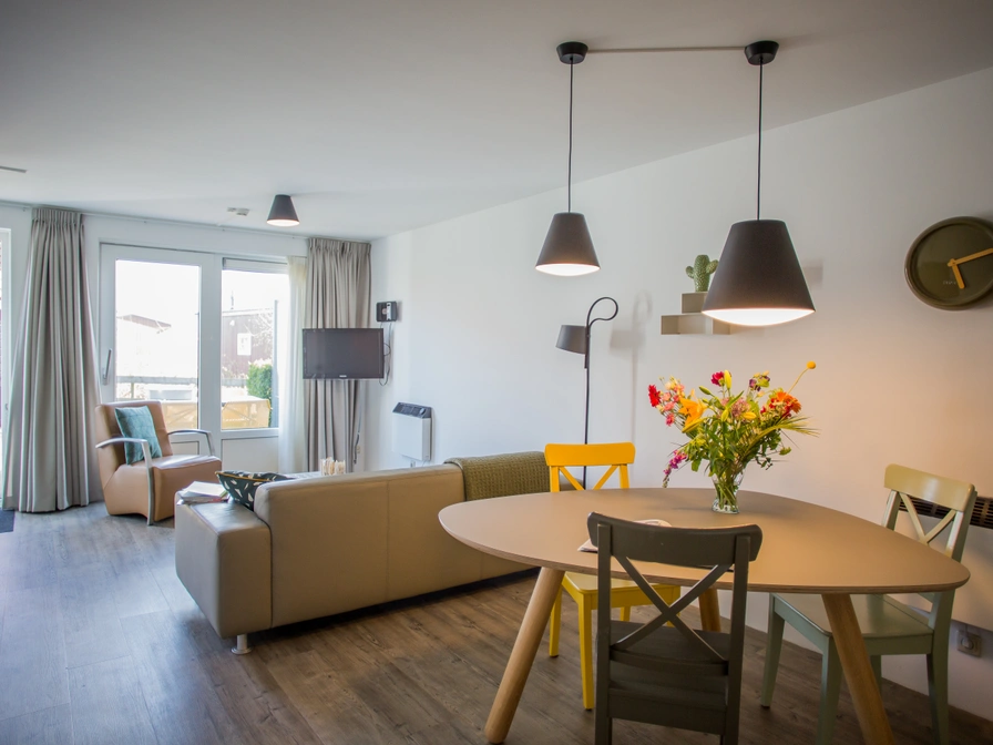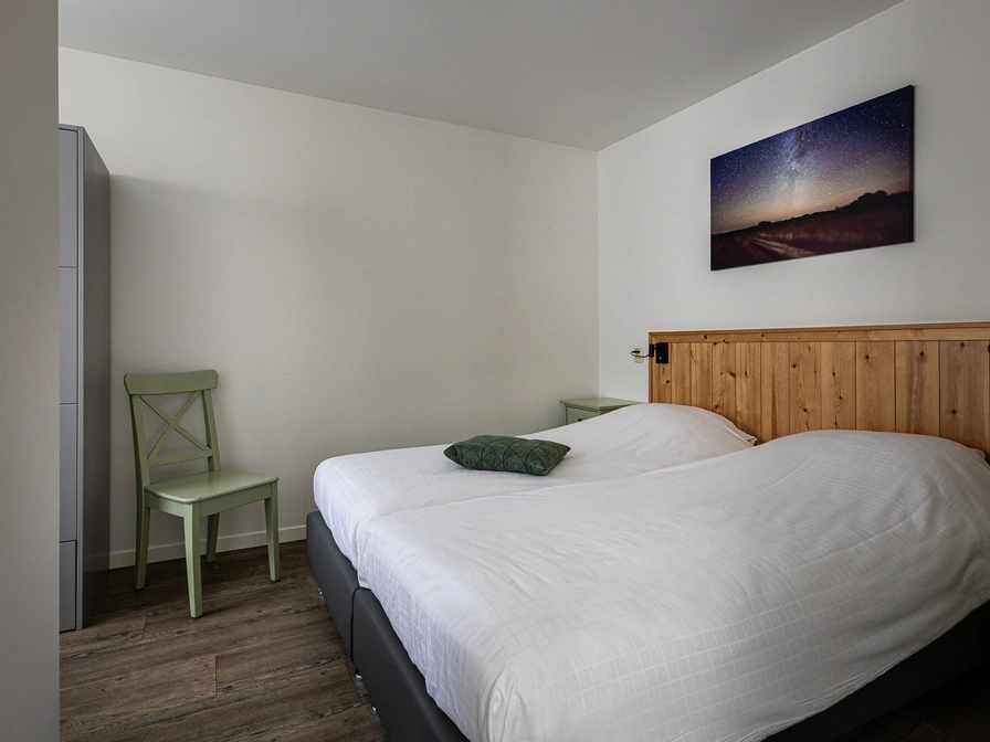 Der Komfort eines Hotels kombiniert mit dem Komfort und der Geräumigkeit eines Apartments! Sie wohnen rundum versorgt in einem komplett eingerichteten Apartment mit Küche und genießen das Frühstücksbuffet im Restaurant. Die Zweizimmerwohnungen liegen im Erdgeschoss und liegen komplett im Erdgeschoss. Sie verfügen über ein gemütliches Wohnzimmer mit Sitzecke und Fernseher. Die Küche verfügt über einen 4-Flammen-Elektroherd. Das Badezimmer ist mit einer Toilette, einer Dusche und einer privaten Sauna ausgestattet. Das Schlafzimmer verfügt über zwei Einzelbetten. Angrenzend an die Wohnung befindet sich eine Terrasse mit Sitzgelegenheiten. Der Ferienpark Tjermelân bietet viel Platz zum Entspannen und Genießen eines Urlaubs. Das Apartmenthotel liegt auf der unberührten Ostseite von Terschelling, zwischen den Dörfern Hoorn und Oosterend. Es gibt wenig Durchgangsverkehr und das Naturschutzgebiet Boschplaat liegt in der Nähe. Der Strand ist weniger als drei Kilometer entfernt und mit dem Fahrrad gut erreichbar. Sowohl Hoorn als auch Oosterend haben gemütliche Strandpavillons (Kaap Hoorn und das Heartbreak Hotel). Im Dorf Hoorn können Sie köstliche Tapas im spanischen Restaurant De Reis oder ein Abendessen im Restaurant Zonneweelde mit Spielplatz für Kinder genießen. Das stilvolle Restaurant De Heeren van der Schelling befindet sich im Dorf Oosterend. Oder besuchen Sie den Bauernhof De Zeekraal mit köstlichem Käse und Eis aus Bio-Schafsmilch. Puur Terschelling bietet entspannende Planwagenfahrten und Ausritte auf Friesen- und Shire-Pferden.