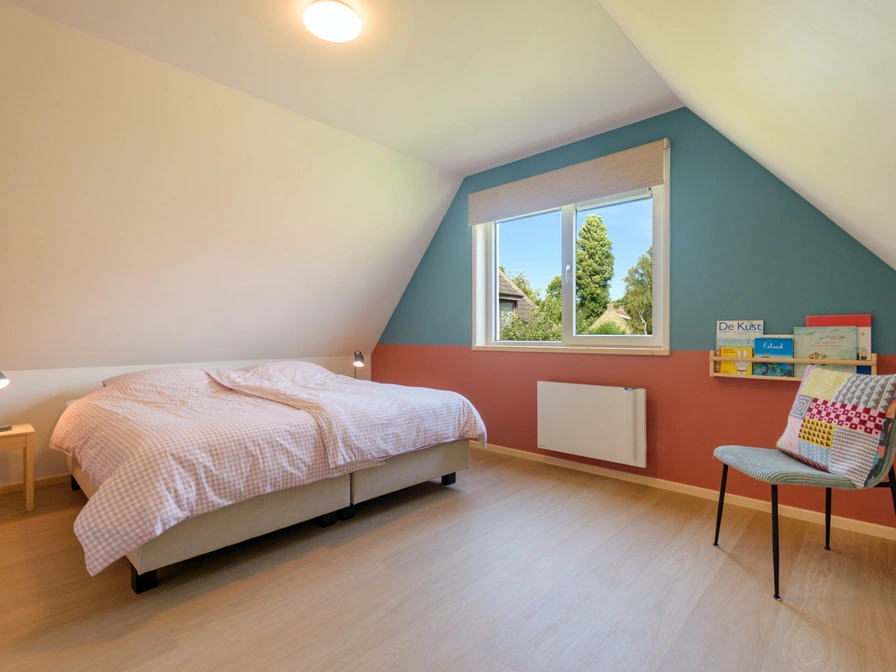 Ferienhaus Klimroos – Für 6 Personen Entfliehen Sie dem Alltag in Terschelling und genießen Sie den Komfort und die Großzügigkeit des Ferienhauses Klimroos, ideal für Familien mit bis zu 6 Personen. Wohnbereich: Geräumiges 55 m² großes Wohnzimmer mit Ecksofa, ausziehbarem Esstisch und offener Küche. Die Küche ist komplett ausgestattet mit Geschirrspüler, Mikrowellen-Kombination, Induktionskochfeld, Kühlschrank mit Gefrierfach, Wasserkocher und Filterkaffeemaschine. Ein Smart-TV sorgt für Entspannung. Schlafzimmer & Badezimmer: Erdgeschoss: 9 m² großes Schlafzimmer mit 2 Boxspringbetten (90 x 200 cm). Geräumiges Badezimmer mit ebenerdiger Dusche, Doppelwaschbecken und Waschmaschine. Separates WC im Flur. Obergeschoss: Zwei geräumige Schlafzimmer und ein separates WC. Südlich ausgerichtetes Zimmer (18 m²): Doppelbett (180 x 200 cm) mit Blick über die Wiesen zum Wattenmeerdeich. Nordzimmer (18 m²): 2 Boxspringbetten (90 x 200 cm). Außenbereich: Gepflasterte Südterrasse mit Picknicktisch, 2 Liegestühlen und 6 Gartenstühlen. Ein Schuppen bietet Platz zum Aufladen Ihres E-Bikes. Zusätzlich vorhanden: Wäschetrockner und Sonnenschirm. Ein Kinderbett und ein Hochstuhl sind vorhanden. Das Ferienhaus Klimroos bietet die perfekte Kombination aus Ruhe, Komfort und viel Platz und ist somit ein idealer Ausgangspunkt, um Terschelling zu erkunden.