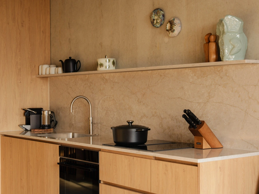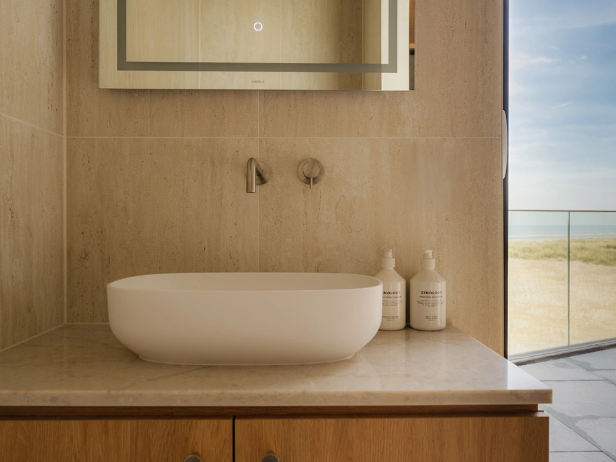 Das Apartment verfügt über zwei elegante Schlafzimmer, beide mit luxuriösen Boxspringbetten und hochwertiger Bettwäsche ausgestattet. Jedes Schlafzimmer hat ein eigenes Badezimmer mit ebenerdiger Regendusche, exklusiven Pflegeprodukten von Zenology®, flauschigen Handtüchern, Bademänteln, Hausschuhen und einem Haartrockner – alles für ein exklusives Wellness-Erlebnis in Ihrer eigenen Suite. Die offene Küche ist komplett ausgestattet mit hochwertigen Annehmlichkeiten: Kaffeemaschine (Tassen), Quooker®, Induktionskochfeld, Geschirrspüler, Kühlschrank mit Gefrierfach, einem umfangreichen Kochgeschirr-Set sowie stilvollem Geschirr und Gläsern. Das gemütliche Wohnzimmer ist mit einem bequemen Sofa, Sesseln und einem Smart-TV eingerichtet. Französische Türen führen auf einen oder mehrere Balkone mit Gartenmöbeln, die sich an verschiedenen Seiten des Apartments befinden. Im Flur befindet sich ein separates WC. Neben der privaten Sauna bietet das Apartment kostenfreies WLAN, eine Waschmaschine und einen Trockner.